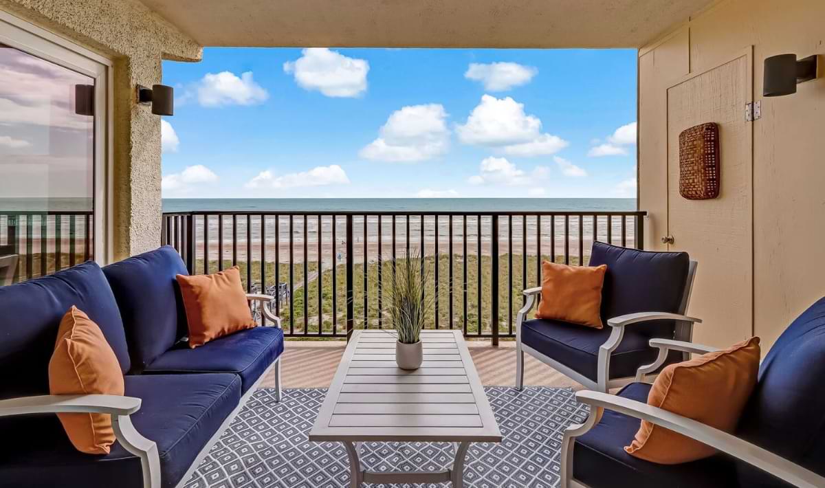 • Fourth-floor oceanfront balcony boasting stylish decor.